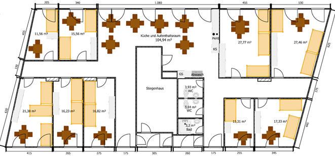 Ca. 600 m² Wohn- und Lernraum für Kurzzeit- und Jahresunterkünfte stehen in Wien 15 zur Verfügung. 50 Studierende wohnen, leben und lernen zusammen.
